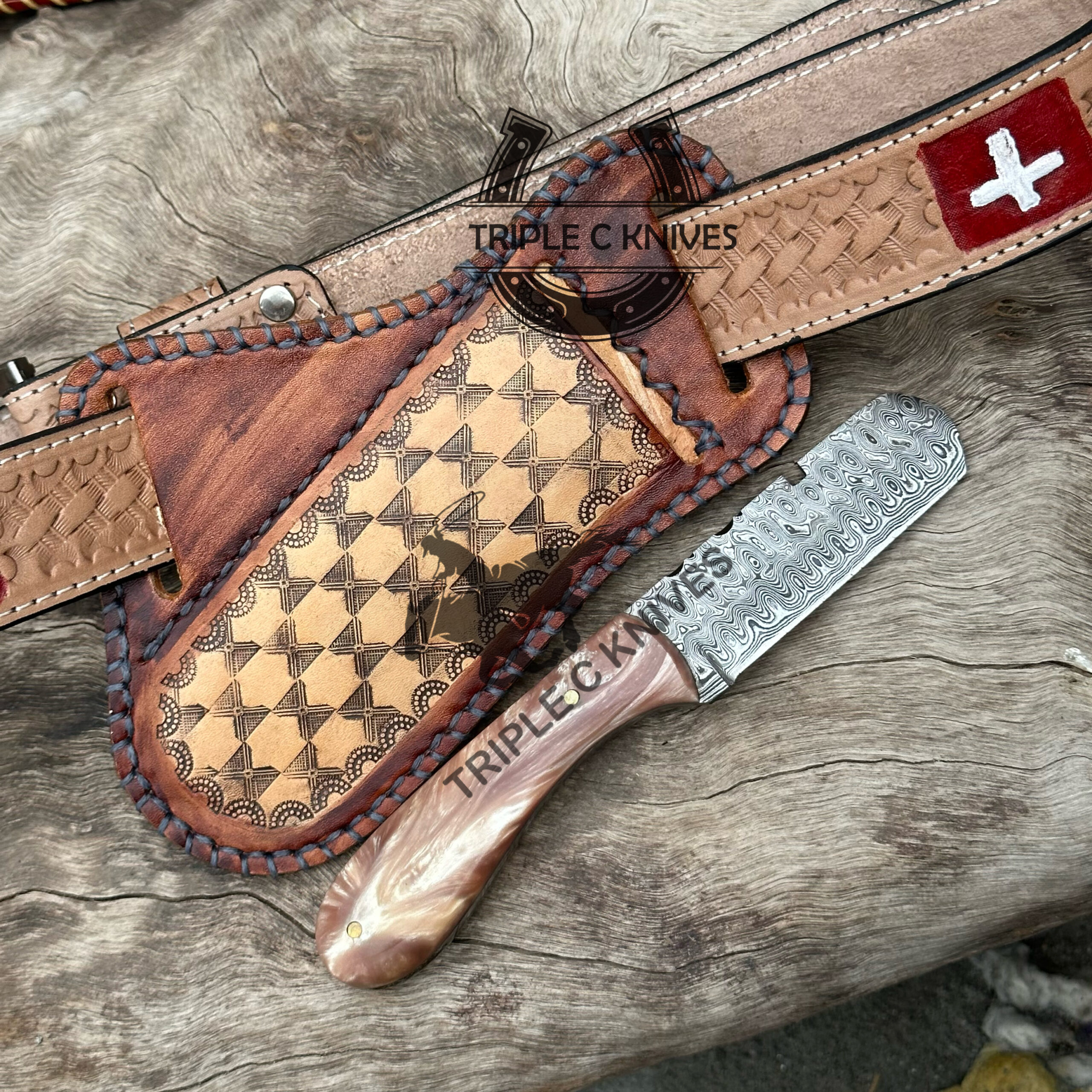 Comes With handmade Leather Sheaths With handmade white skin stitching.