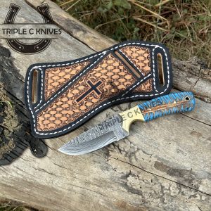 Custom Made handmade Damascus steel Fixed Blade cowboy knife