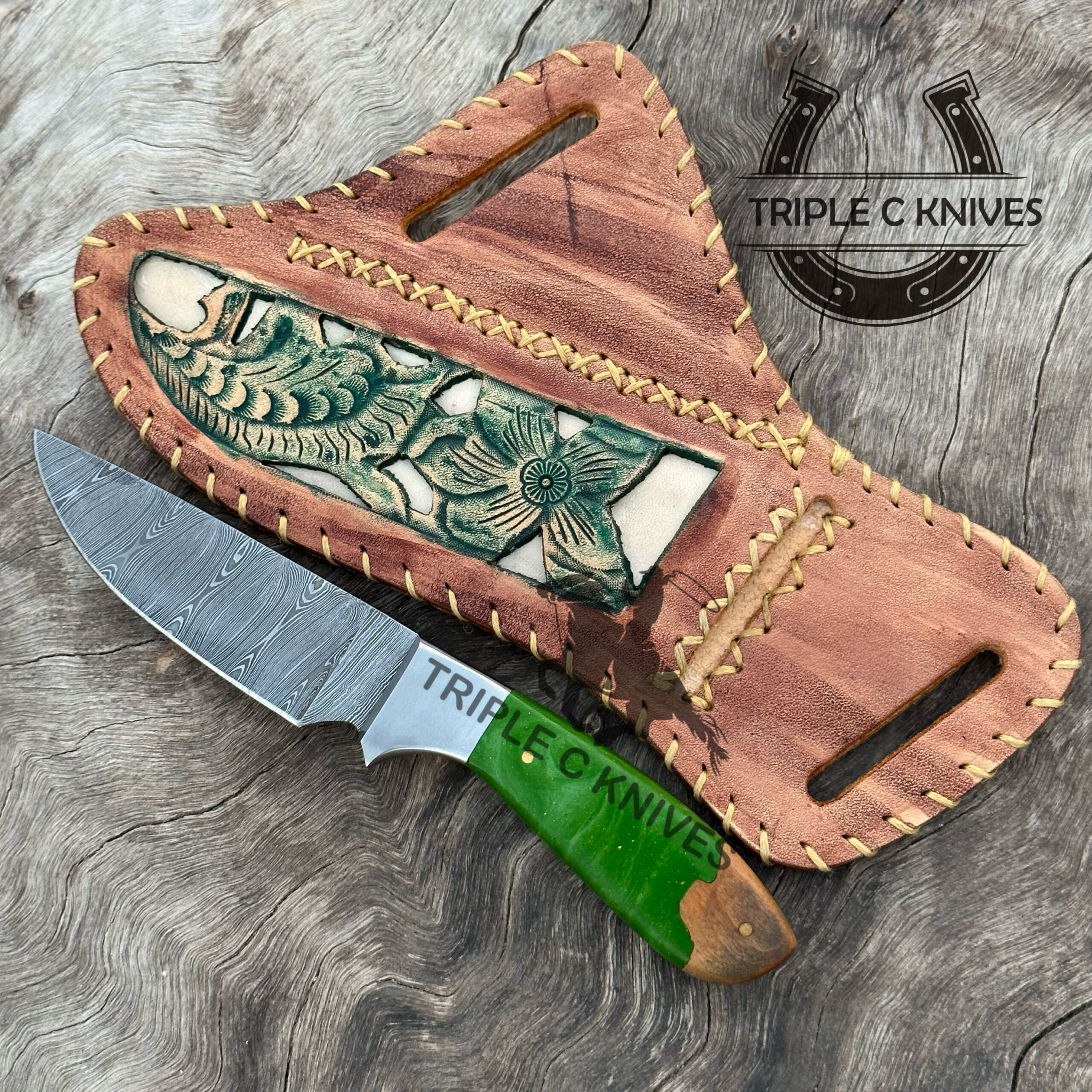 Custom Made handmade Damascus steel Fixed Blade cowboy knife
