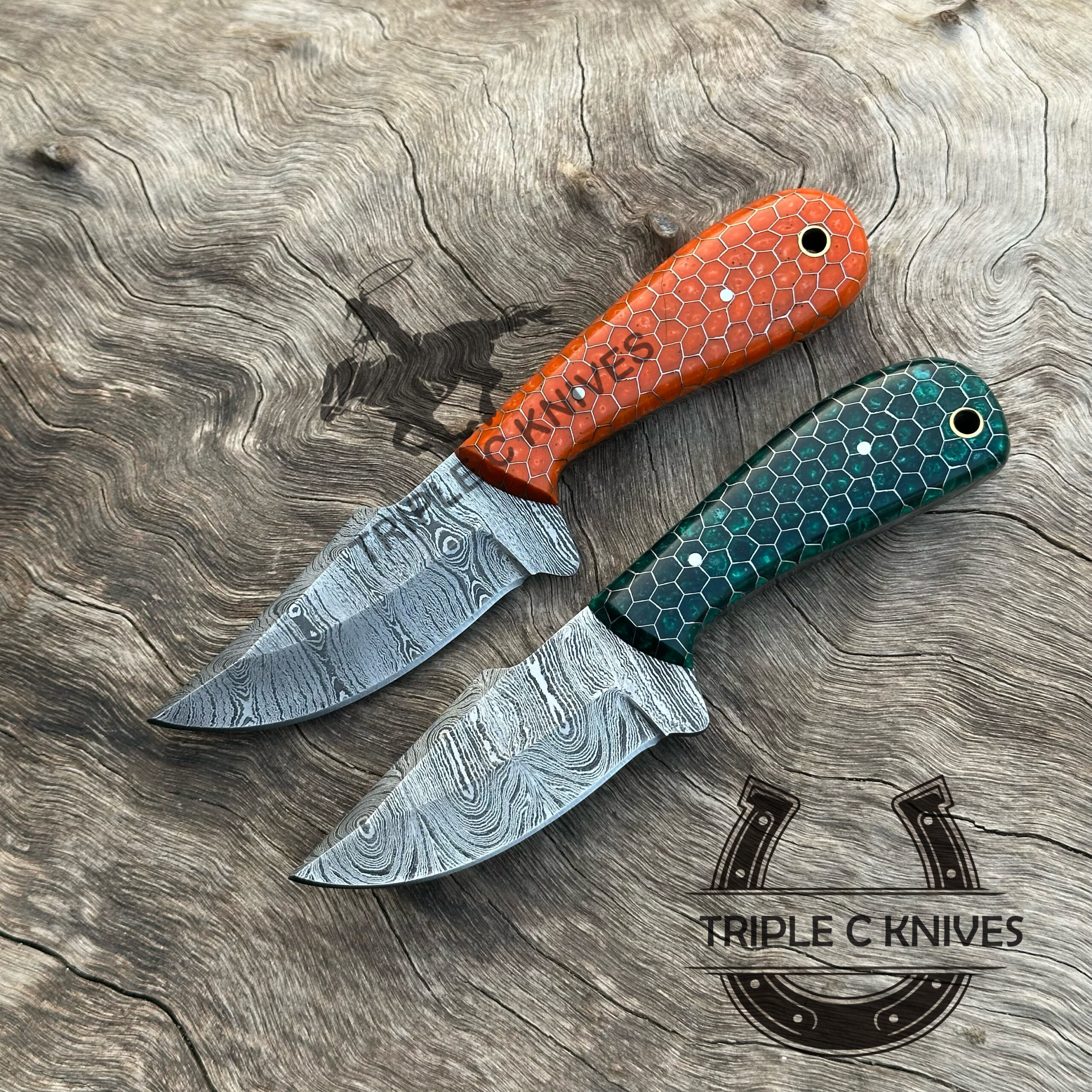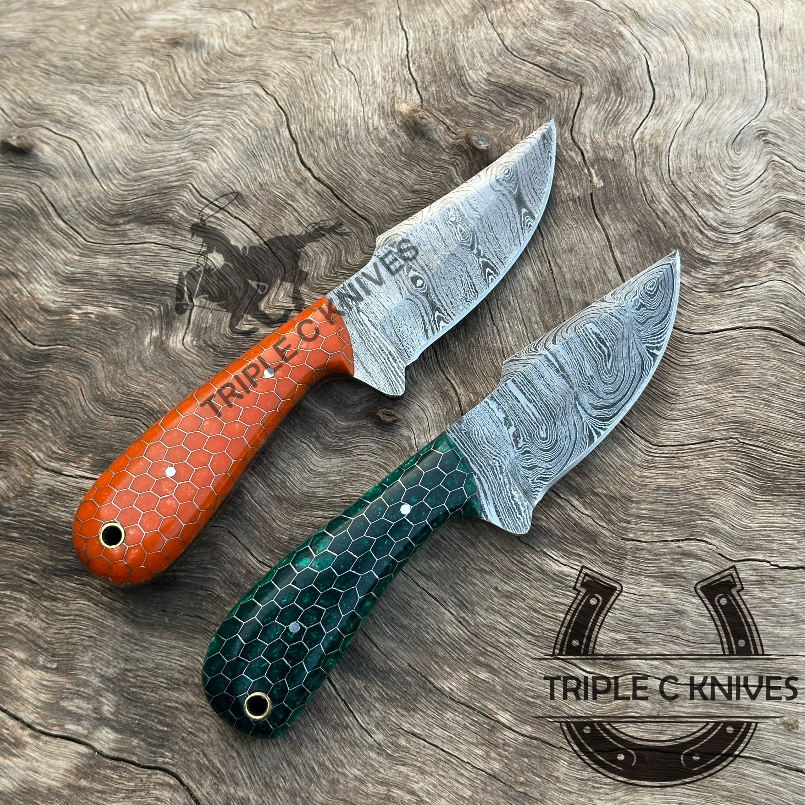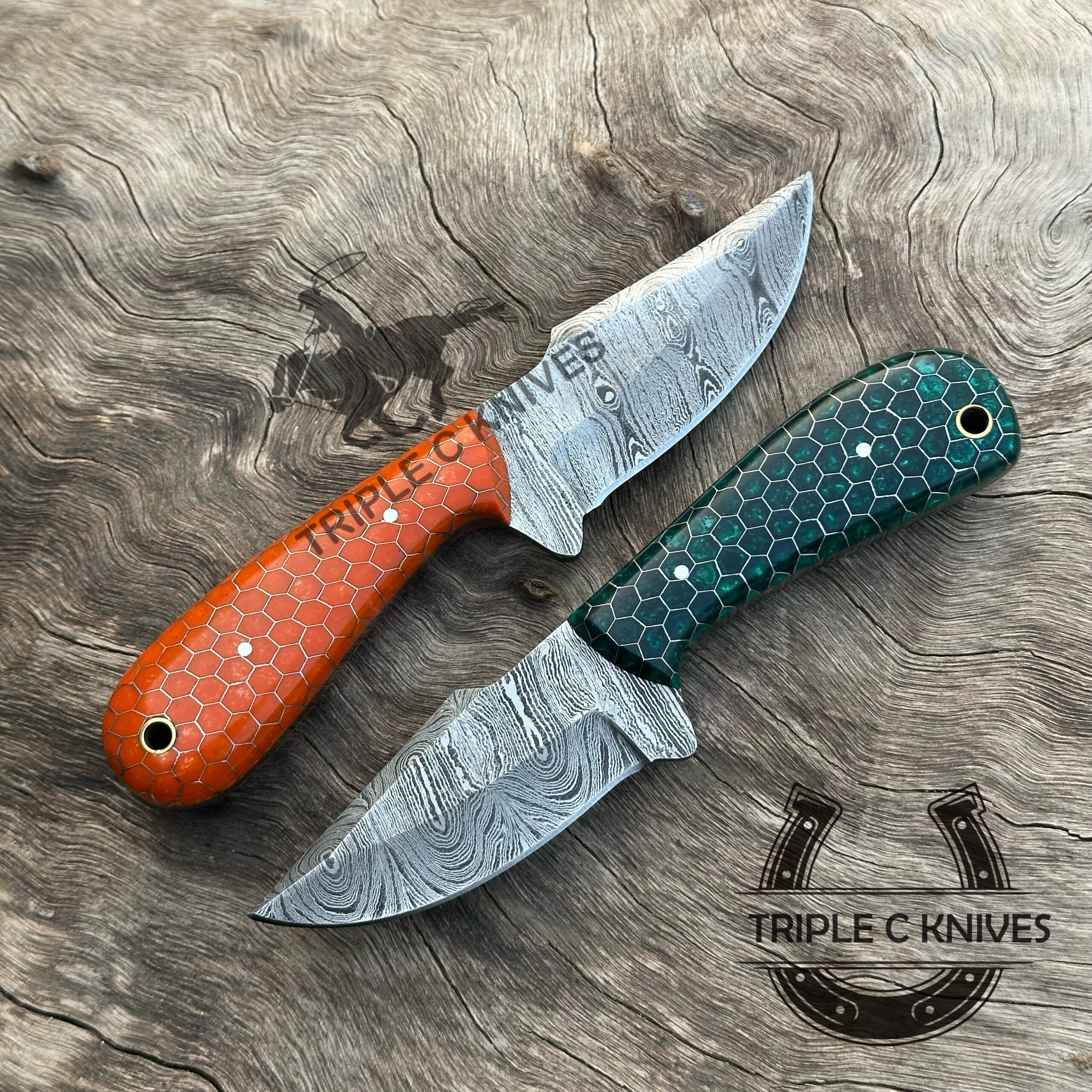 Custom Made handmade Damascus steel Fixed Blade cowboy and skinner knife
