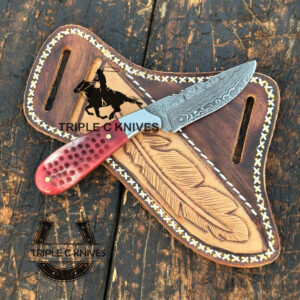 Custom Made handmade Damascus steel Fixed Blade cowboy knives