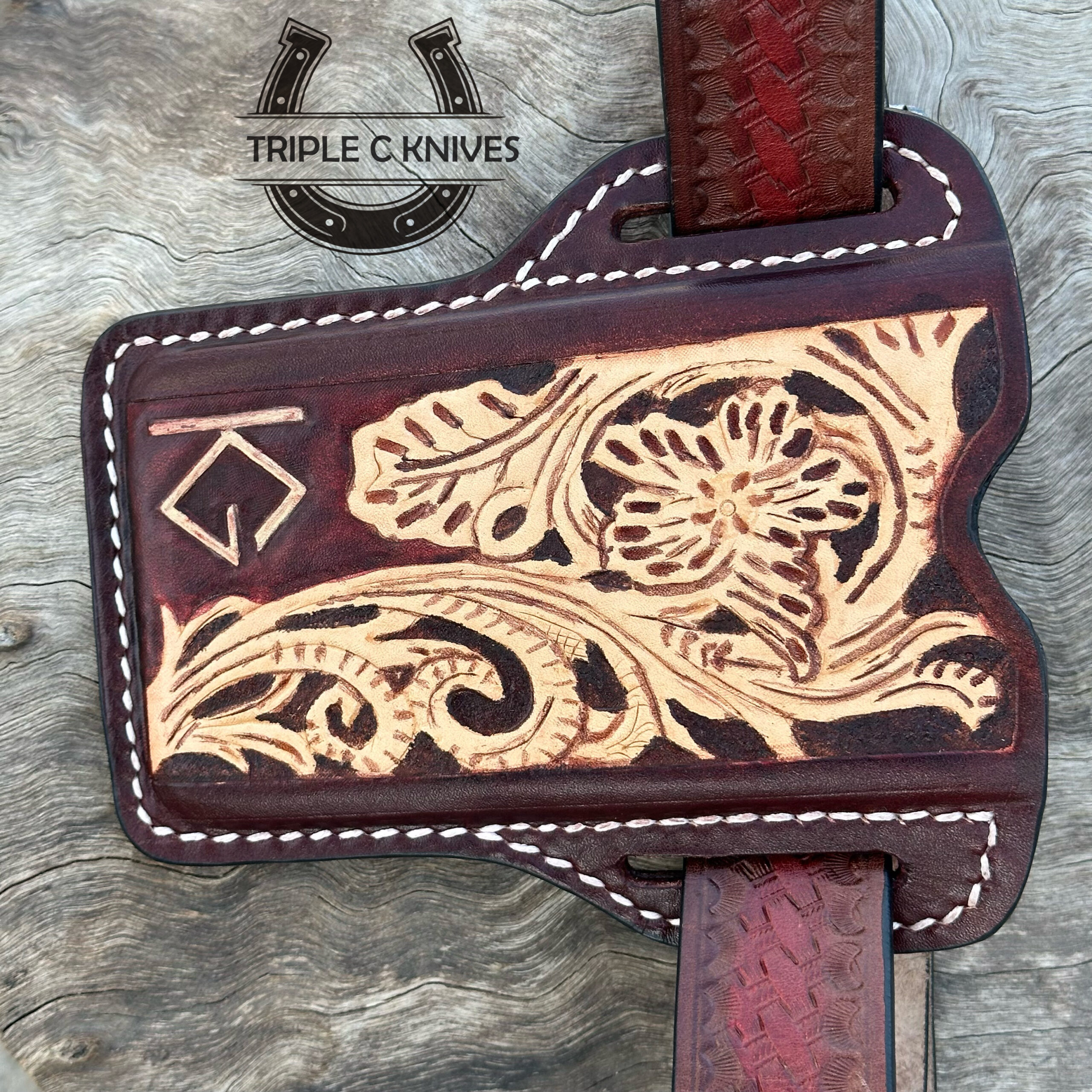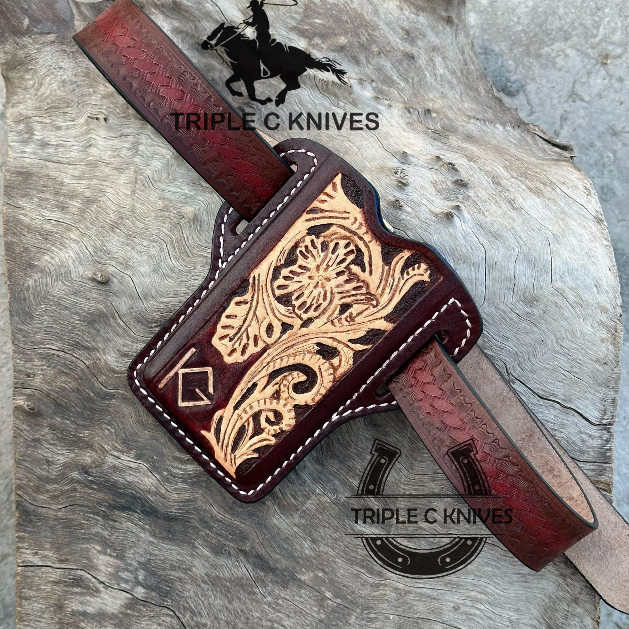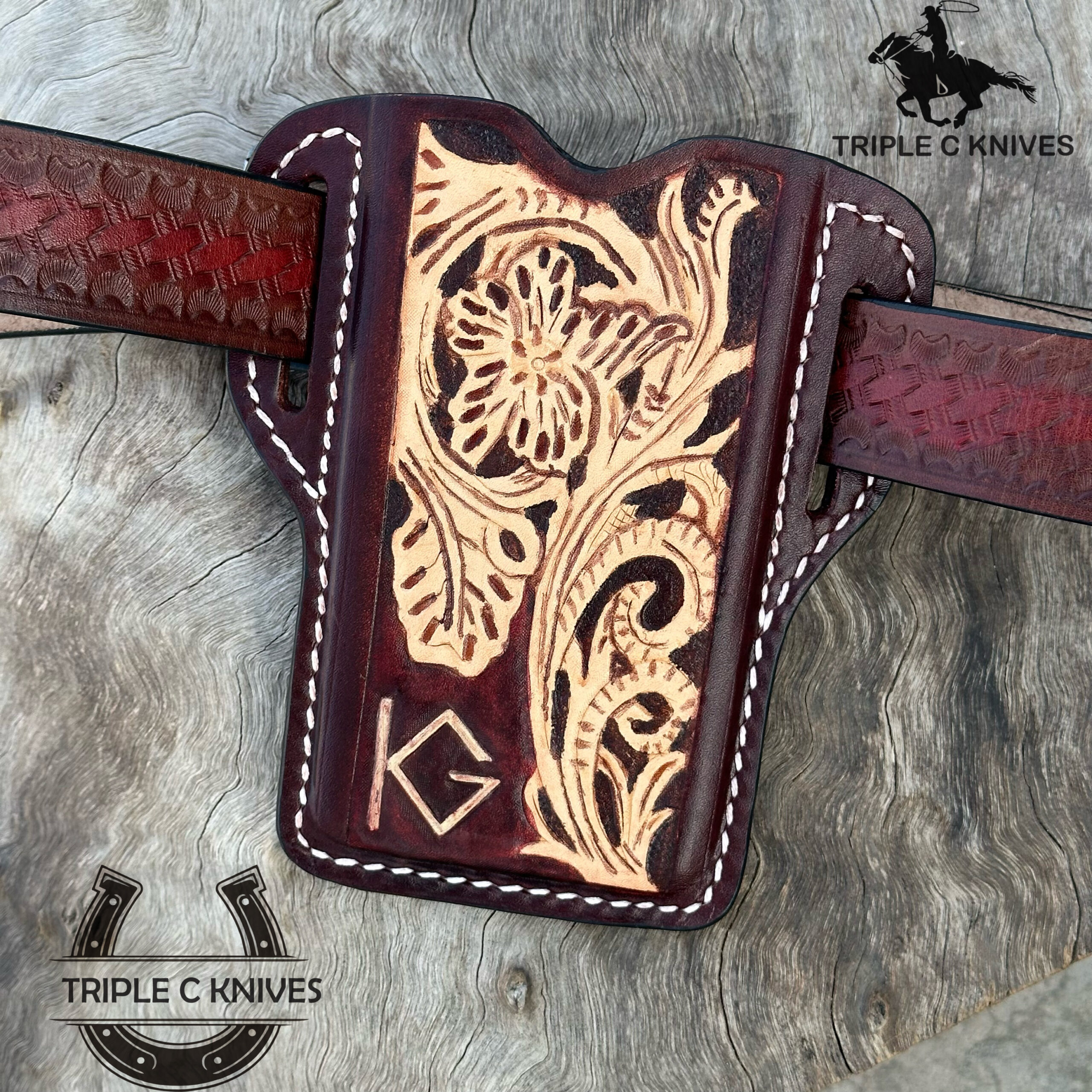 Custom made handmade tooled Leather phone case with leather belt