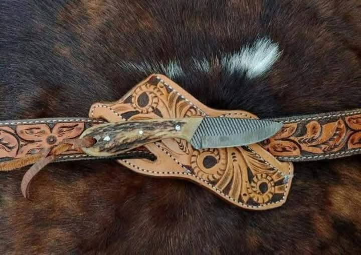Custom made Horse Rasp steel Fixed blade cowboy knife & leather belt